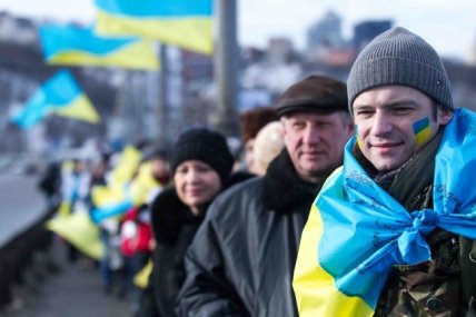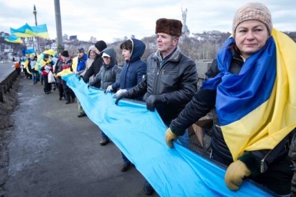 На мосту Патона в Киеве активисты образовали "живую цепь соборности" к 98-й годовщине Акта Воссоединения.