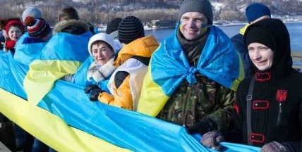 На мосту Патона в Киеве активисты образовали "живую цепь соборности" к 98-й годовщине Акта Воссоединения.