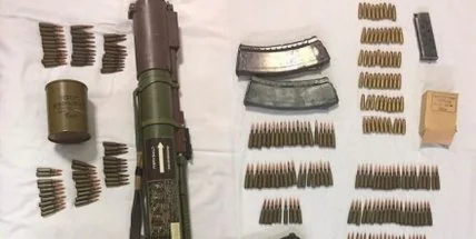 Второй схрон обнаружили в селе Бердянское, в нем находились гранатомет РПГ-22 и около трехсот патронов разного калибра.