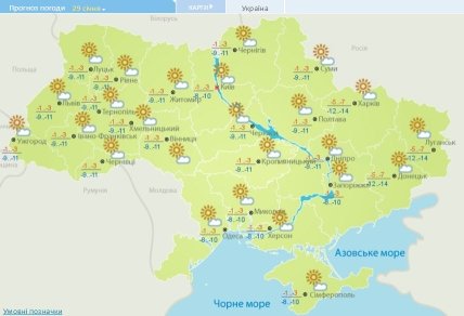 Прогноз на 29 января. Фото: Укргидрометцетр