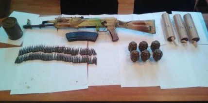 В частности, было изъято: автомат АК-74 – 1 ед., 5,45 мм патроны ПС – 93 ед., граната Ф-1 – 6 ед., запал УЗРГМ – 10 ед., пиротехнические средства (дымы) – 3 ед.