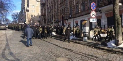Около 19.00 протестующими были предприняты попытки пройти на улицу Банковую. Полиция и подразделения Национальной гвардии Украины препятствовали проходу людей.
