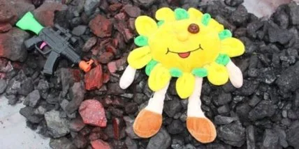 В Запорожье на площади героев Революции достоинства состоялся митинг в поддержку блокады на Донбассе. Активисты принесли с собой уголь и детские игрушки, которые полили красной краской как символом крови.