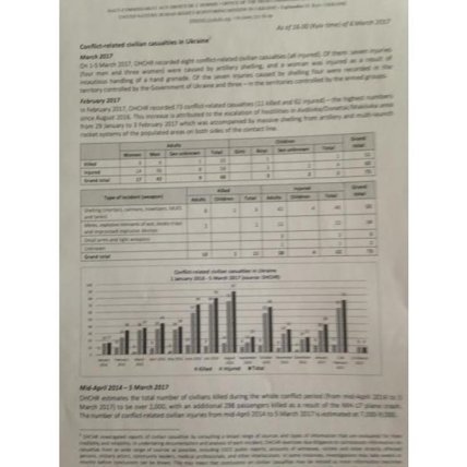 Всего с середины апреля 2014 по 5 марта 2017 года, по данным ООН, были убиты более 2 тысяч мирных жителей, а число раненых оценивается в 7-9 тысяч человек.