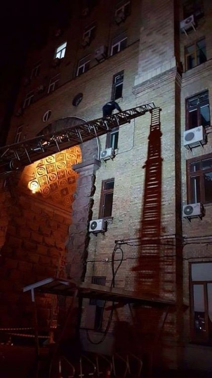 Как сообщает телеканал новостей "24", на земле же лежали куски штукатурки.