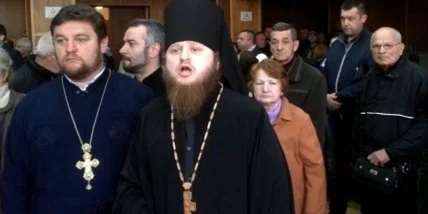 Мэр Ужгорода Богдан Андреев снял с рассмотрения сессии спорный проект решения о разделе земельного участка между киевским и московским патриархатом. Услышав это, священники Московского патриархата двинулись в президиум с криками: "Мы не уйдем отсюда, пока вы не проголосуете за это решение!". Также они заблокировали трибуну, на которой уже стояли военные.