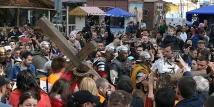 В субботу, 15 апреля, в честь предстоящей Пасхи в Одессе устроили яркое шествие Страстей Христовых, стилизованное под времена Древнего Рима.