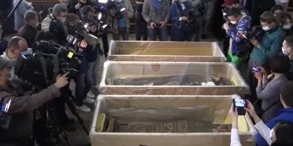 "Широкому кругу показали женскую мумию, деревянный саркофаг, покрытый полихромными росписями, две такие же крышки и мумию нильского крокодила", - говорится в сообщении.