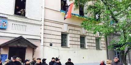 Участники марша "Бессмертный полк" постояли возле офиса ОУН.
