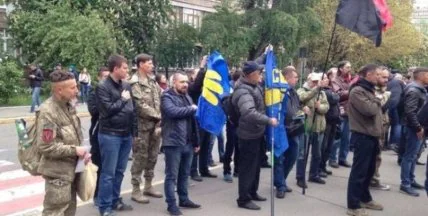 Как передает корреспондент агентства "Интерфакс-Украина", в настоящее время возле проходной министерства на ул.Богомольца в центре столицы находятся несколько десятков человек, у некоторых из них есть красно-черные флаги с надписью "ОУН", государственные флаги Украины. Также к ним присоединились несколько активистов партии "Свобода" и "Правый сектор", которые держат свои партийные флаги.