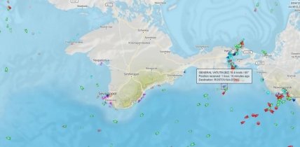 Вчера, в 5 часов утра, он вышел из Вилкова и неожиданно взял курс на Крым. Ночь он провел возле южного берега оккупированного полуострова, а сегодня утром возобновил движение.