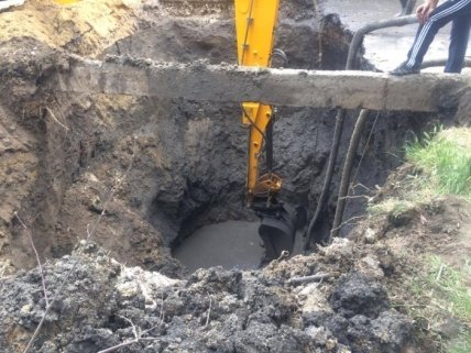 Отмечается, что прорыв случился еще вчера, но устранить течь до сих пор не удалось: труба проложена по дну засыпанной балки, на глубине 7 метров. Ремонтники уже вычерпали 200 кубометров грунта.