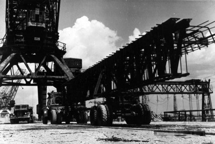 В 1956 году на место строительства приехала "гастрольная" и на то время легендарная организация "Мостопоезд-473", которая возводила мосты по всему СССР. Летом 1959 года начали монтаж металлических частей, а уже в 1960-1961 году построили автодорогу по дамбе, которую подсыпали к уже существующей железной дороге и протянули до 15 километров.