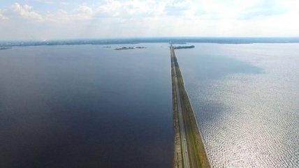 Отметим, что общая длина дамбы с мостом составляет 13 километров. Это крупнейший подобный объект в Украине.