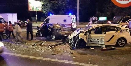 Погоня в Киеве: водитель на скорости врезался в машину полиции