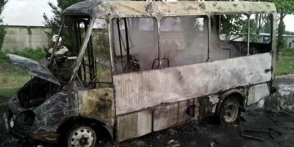 В Херсоне дотла сгорела маршрутка