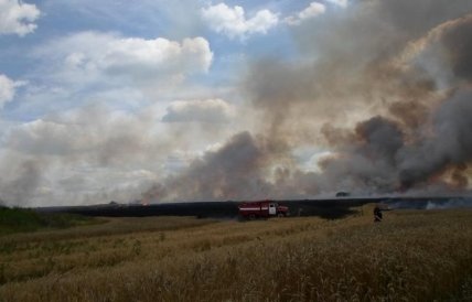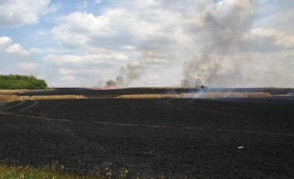 Вероятной причиной масштабного пожара на пшеничном поле является боевые действия.