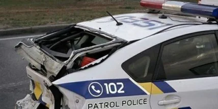 В Киеве грузовик на скорости протаранил полицейский Prius, патрульного-водителя госпитализировали.