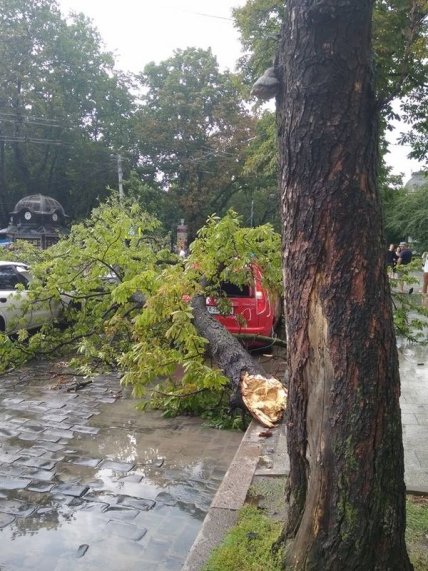 «Сильный ветер поломал деревья на центральном проспекте Свободы во Львове. Также дерево сломалось во дворе на ул.Пасечной,49. А на ул.Медовой Пещеры сорвало крышу и повредило автомобиль», - отметил Зинкевич.