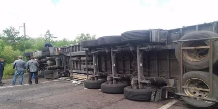 На Львовщине перевернулась фура, водитель и пассажир в результате аварии получили телесные повреждения. Об этом сообщили в пресс-службе полиции Львовской области. ДТП произошло 23 июля около шести часов утра на автодороге "Турка-Песочная" в Дрогобычском районе между селами Солонско и Довгое. Как предварительно установили правоохранители, водитель тягача "Рено" с полуприцепом не справился с управлением, выехал на обочину, после чего грузовик перевернулся.