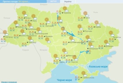 Восьмого августа грозовые дожди пройдут в Черниговской, Сумской, Харьковской, Луганской, Полтавской, Черкасской, Кировоградской областях и в столице. На остальной территории – переменная облачность. Относительно жаркая погода ожидается на юге и востоке, здесь столбик термометра будет колебаться в пределах от 30 до 37 градусов. Так, в Донецкой области температура воздуха поднимется до 36-37 градусов, в Одесской области столбик термометра будет колебаться в пределах 30-32 градусов, а в Херсонской и Запорожской областях – до 35 градусов.