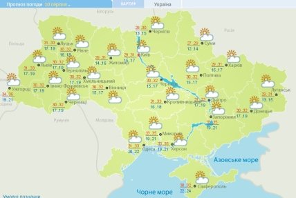 11 августа грозовые дожди ожидаются в Волынской, Львовской, Ивано-Франковской и Закарпатской областях, на остальное территории – переменная облачность. Синоптики прогнозируют жарку погоду на юге – до 35 градусов выше нуля днем. В центре и на востоке столбик термометра будет колебаться от 29 до 33 градусов. На севере Украины – от 29 до 31 градуса.