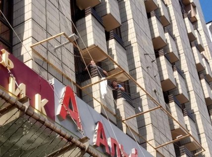 Мужчина, угрожавший прыгнуть с 3 этажа гостиницы "Крещатик" в центре Киева, вернулся обратно в здание.