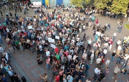 Между митингующими и правоохранителями произошло столкновение после того, как часть участников акции протеста попыталась пройти в здание, где проходила сессия горсовета, но их не пропустили. Сессия горсовета была прервана.