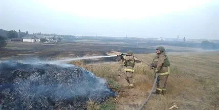 В Донецкой области на территории склада боеприпасов горит трава, из-за детонации боеприпасов загорелись хозяйственные сооружения.