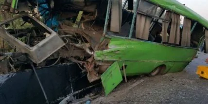 "ЧП случилось в 17:40 на мосту в Изюме. По предварительным данным, столкнулись автобус "Эталон", авто "ВАЗ 2121" и грузовой MAN с прицепом. Причем автобус врезался в бетонную опору моста", - отметила Алексеева.