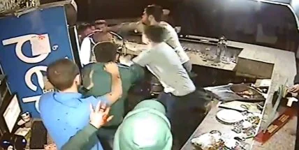 У стойки между ними становится друг Игоря — Вячеслав (в красной футболке), пытаясь остановить конфликт, но завязывается драка. Игорю Кочневу, защищаясь, удалось перебраться через барную стойку, в него полетели бутылки, стаканы, потом и сами нападавшие забежали за стойку, продолжив избивать его. Однако АТОшнику удалось дать отпор "озверевшей" компании.