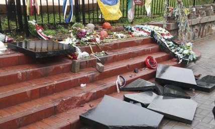 "Сегодня на Аллее Героев Небесной Сотни произошел преступный акт вандализма", - написал З.Шкиряк на своей странице в соцсети Facebook, проиллюстрировав сообщение фотографиями разгромленного памятника.
