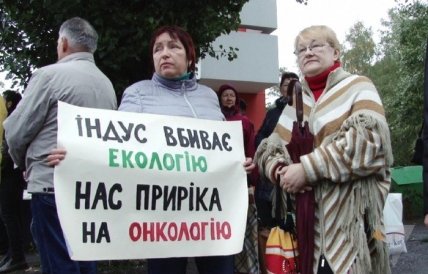 Из затонувшего корабля в Черном море извлечено 14 тыс боеприпасовЧасть активистов были одеты в противогазы и одежду с надписями "Хватит травить Украину", а также держали плакаты с надписями "Лакшми! Мы тоже хотим жить". Также активисты собирали подписи под требованиями к руководству завода.