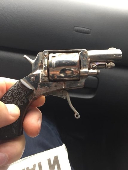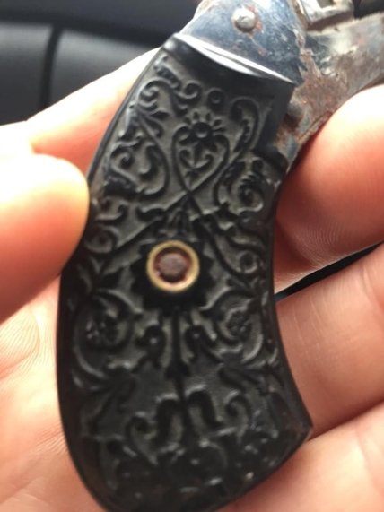 “Это револьвер, думаю, женский, которому не менее 150 лет. Шестизарядный, в барабане одной пули нет (это тема для будущих исследований, в кого стреляла женщина в те годы). Все признаки ,что изготовлен в Европе: черная пластмасса с декоративными узорами вмонтирована в металлический корпус, а на корпусе выбита цифра 7 и буквы RN и что-то вроде короны”, - описал он находку.