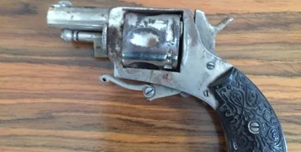 “Это револьвер, думаю, женский, которому не менее 150 лет. Шестизарядный, в барабане одной пули нет (это тема для будущих исследований, в кого стреляла женщина в те годы). Все признаки ,что изготовлен в Европе: черная пластмасса с декоративными узорами вмонтирована в металлический корпус, а на корпусе выбита цифра 7 и буквы RN и что-то вроде короны”, - описал он находку.