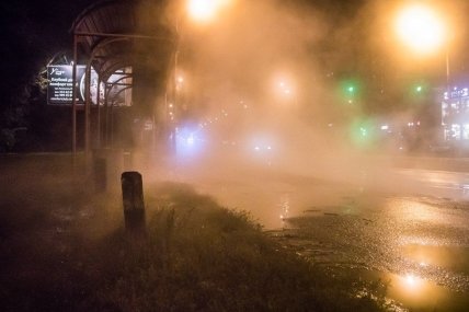 В четверг вечером ,12 октября, в Киеве на проспекте Лобановского прорвало трубы горячего водоснабжения