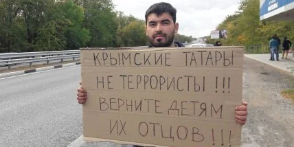 На территории аннексированного Крыма в субботу люди вышли на одиночные пикеты с требованием отпустить задержанных крымских татар.