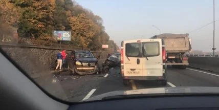Авария перекрыла полосу, по которой могли проехать автомобили - теперь машины движутся со скоростью 5км/ч. Из-за ДТП также образовались огромные пробки - в одну сторону до транспортной развязки у моста Патона, в другую - до Подола.