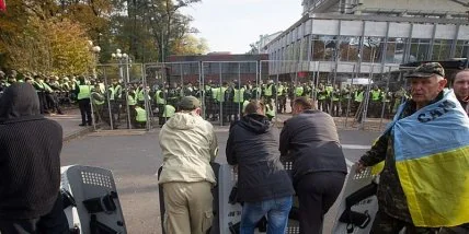 Как сообщалолсь ранее, около 500 человек митинговали на пересечении улиц Банковая и Институтская в центре неподалеку от здания администрации президента Украины в четверг вечером.