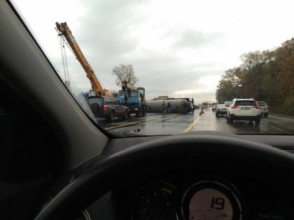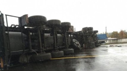 Под Киевом на Одесской трассе произошла авария, в результате которой перевернулась автоцистерна с аммиаком.