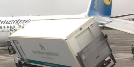 В столичном аэропорту "Борисполь" сегодня утром столкнулись самолет и грузовой автомобиль службы бортового питания. Об этом сообщили в компании "Международные авиалинии Украины".