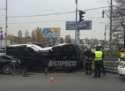 Отметим, что "Эспрессо" со ссылкой на полицию отмечает, что микроавтобус "Мерседес" перевозил пассажиров на въезде в Киев. Нарушая правила дорожного движения, он повернул на улицу Героев Днепра и при этом не пропустил внедорожник "Вольво". Сам водитель маршрутки говорит, что перед ним ехала еще одна маршрутка. Последняя успела проскочить, а он на бешеной скорости влетел в "Вольво".