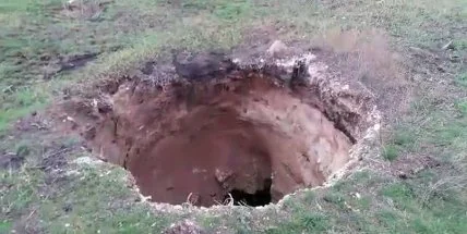 "Как стало известно на месте происшествия, произошел обвал земли диаметром 3 м и глубиной 15 м. Представители ГСЧС огородили участок обвала на площади 64 кв. м для обеспечения безопасности местного населения", - сказано в сообщении.