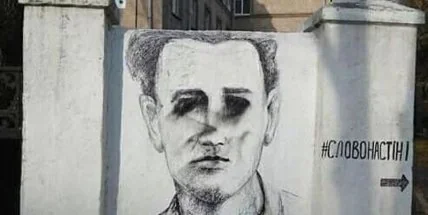 В Днипре неизвестные закрасили черной краской глаза на портрете писателя Олеся Гончара, нарисованном на заборе в рамках акции "Слово на стене".
