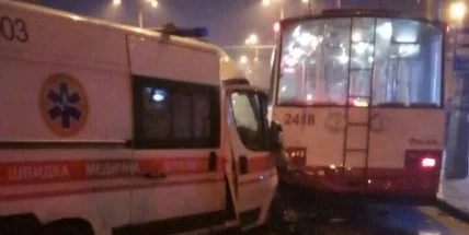 В Харькове машина скорой помощи врезалась в троллейбус, который стоял возле остановки, пострадали двое человек.