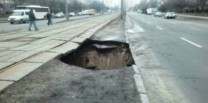 В Киеве провалился асфальт: воронка глубиной в 3,5 метра