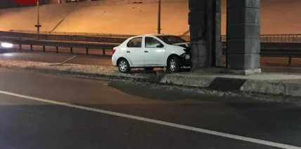 В Киеве накануне ночью на проспекте Победы легковой автомобиль Renault въехал в опору путепровода.