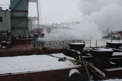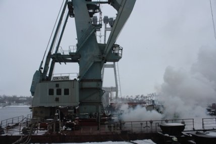 В Запорожье горел плавкран: задействовали три десятки пожарных