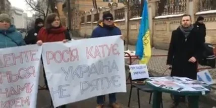 Родственники украинцев, которых незаконно удерживают в тюрьмах на территории РФ и в оккупированном Крыму, провели акцию под зданием Администрации Президента, надеясь, что глава государства Петр Порошенко лично даст им информацию о перспективах освобождения политзаключенных.