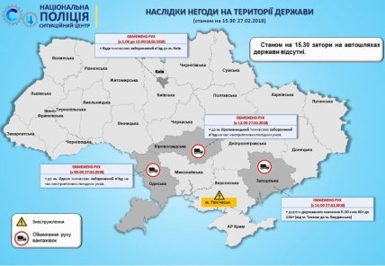 "Водители, будьте внимательны! На дорогах страны гололедица. Временно ограничен въезд грузового транспорта на территорию Киева, Одессы и Кропивницкого. На Запорожье ограничено движение по дороге государственного значения Н-30 (от г.Токмак до г. Бердянск)", - говорится в сообщении.